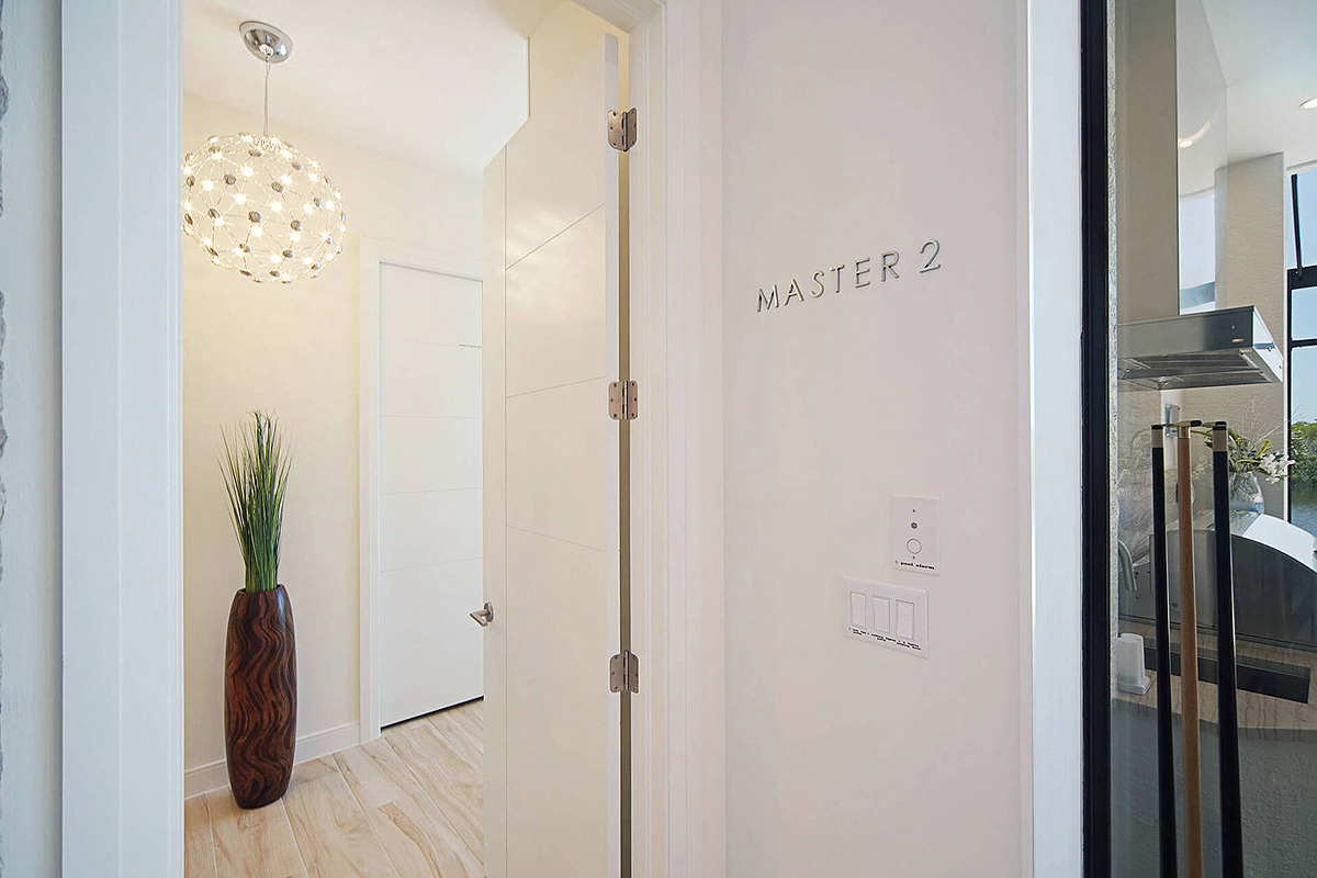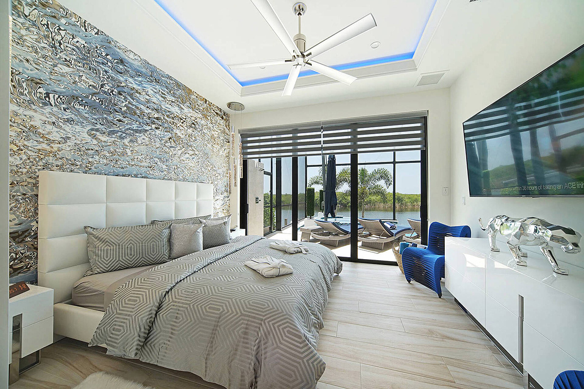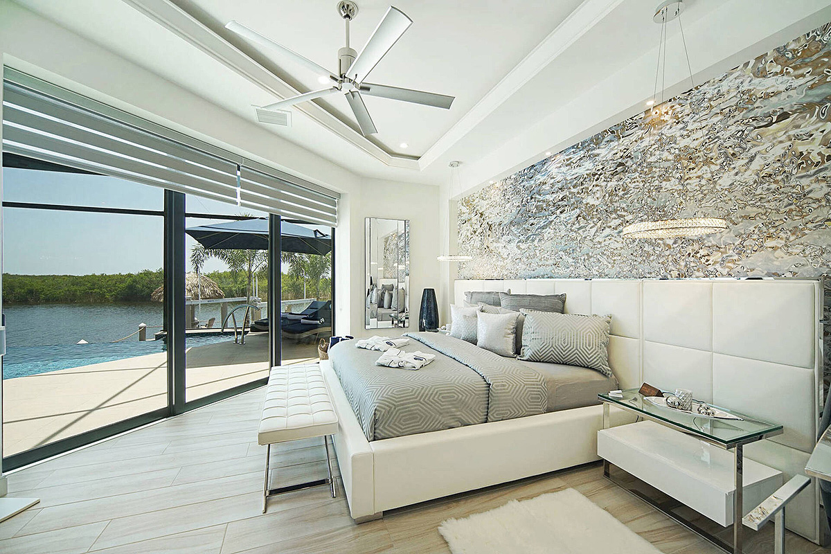 2 Master Suites with King beds, 70 inch 4K Smart TV, separate walk-in closets. Both master suites have sliding glass elements (2.80 meters high) with direct access to the pool area and provide a magnificent, mesmerizing view across the canal into the reserve. Both suites with integrated large bathrooms, walk-in showers, a bathroom also has a rain shower and adjustable handheld shower and bath, scales, makeup mirror, hair dryer, bath and hand towels.